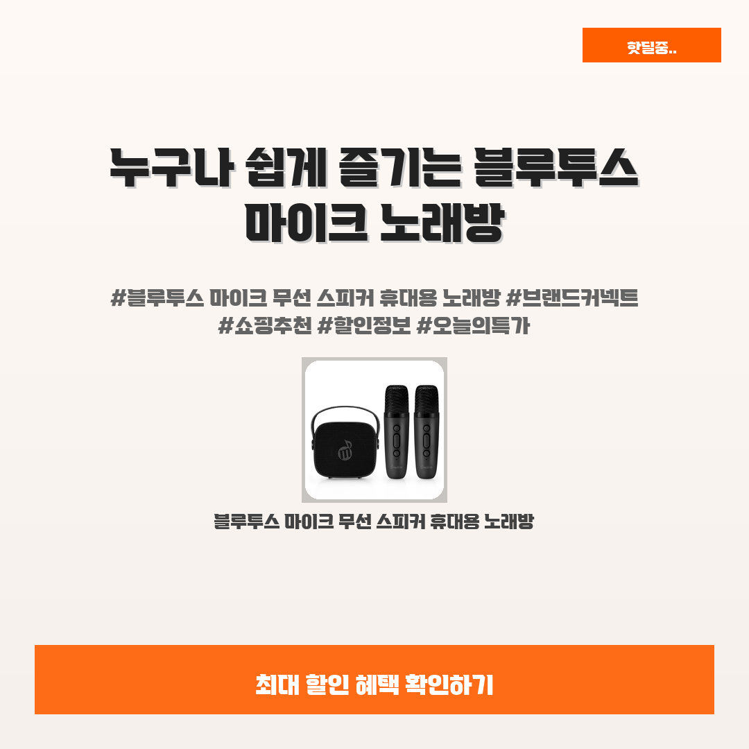 🛍️ 이 포스팅은 네이버 쇼핑 커넥트 활동의 일환으로,판매 발생 시 수수료를 제공받습니다.오늘 소개할 제품은 단언컨데,,누구나 쉽게 즐길 수 있는 블루투스 마이크 무선 스피커 휴대용 노래방이에요!요즘 친구들과의 모임이나 가족과의 시간에 노래방 가는 것도 귀찮고 비싸다고 느끼시나요?그런 당신을 위해 등장한 이 제품은 언제 어디서나 간편하게 노래를 즐길 수 있는 최적의 솔루션이에요.이 블루투스 마이크는 가볍고 휴대성이 뛰어나기 때문에, 야외에서도 카라오케의 즐거움을 누릴 수 있어요!연인과의 데이트, 친구들과의 파티에 이 제품을 가져가면 모두의 시선이 집중될 거예요.게다가 지금 이 제품은 할인된 가격에 제공되고 있어요. 또한 많은 사용자들이 "완전 대박"이라고 극찬하고 있다고 하니,여러분도 그 즐거움을 놓치..